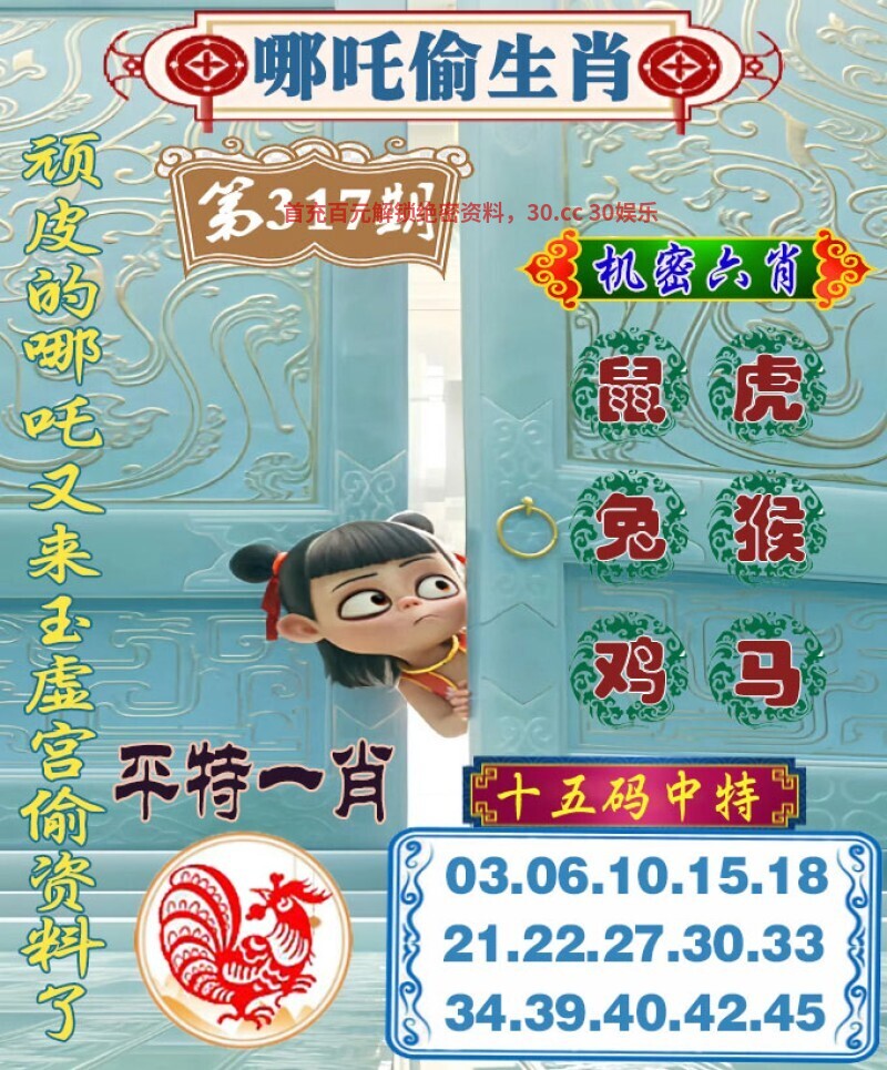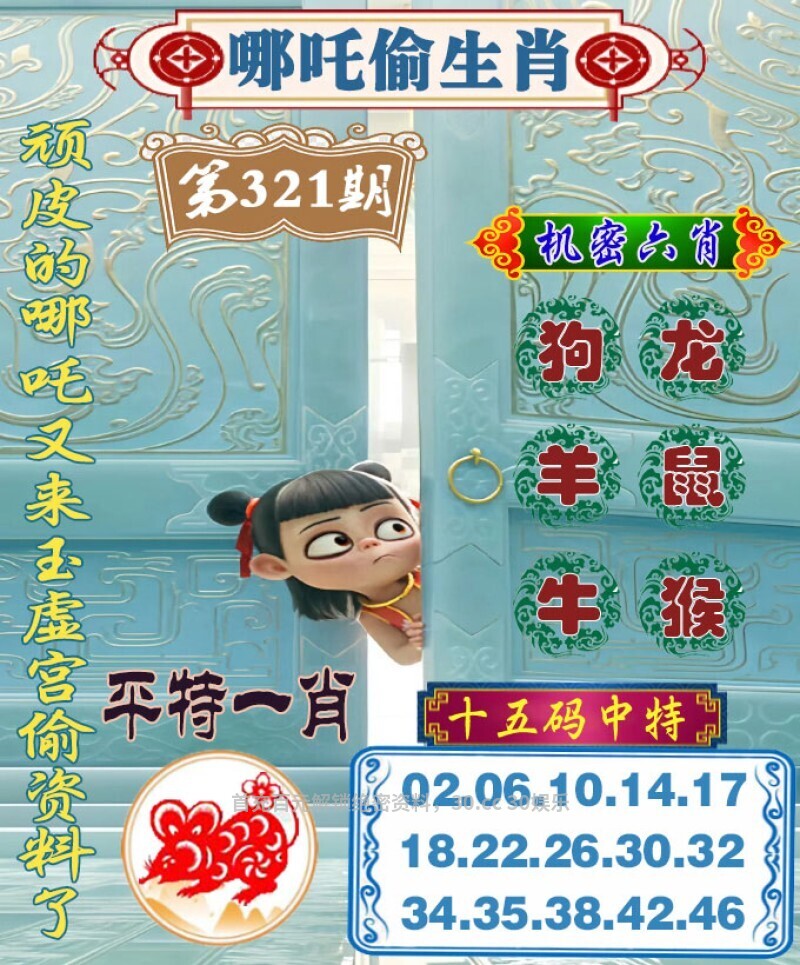 | 321期【解哪吒偷生肖】 解料:一心一意看中猴,今期生肖有火花 机密六肖:狗龙羊鼠牛猴 |
